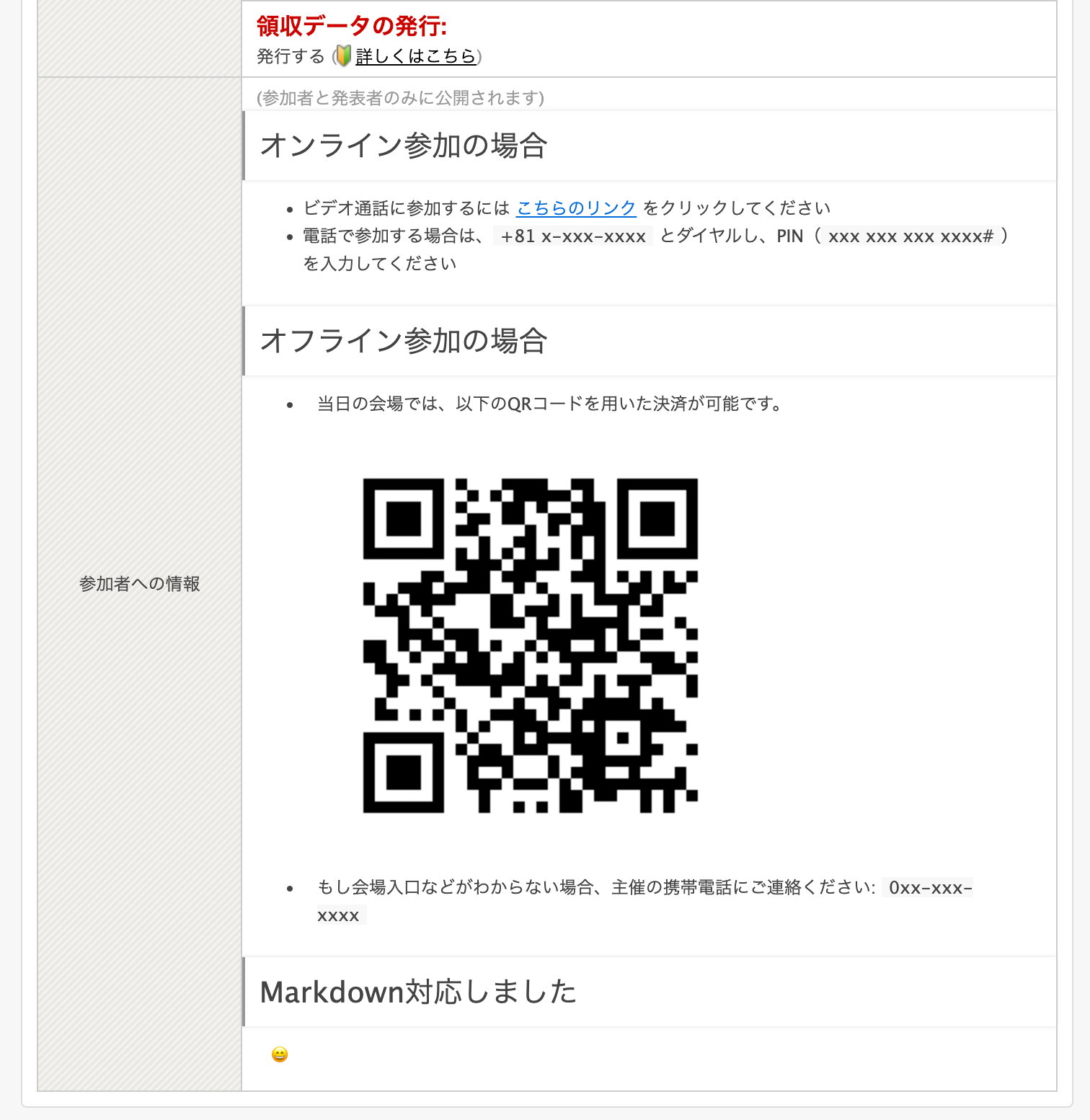 connpassには、イベント管理者が領収データ発行設定を有効にしている有料(前払い)イベントの場合、領収データを発行することができる機能があります。
